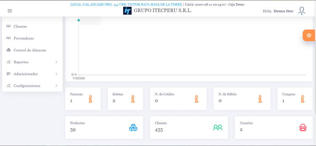 - Gráfico de ventas diario, semanal, mensual y por rango de fechas.